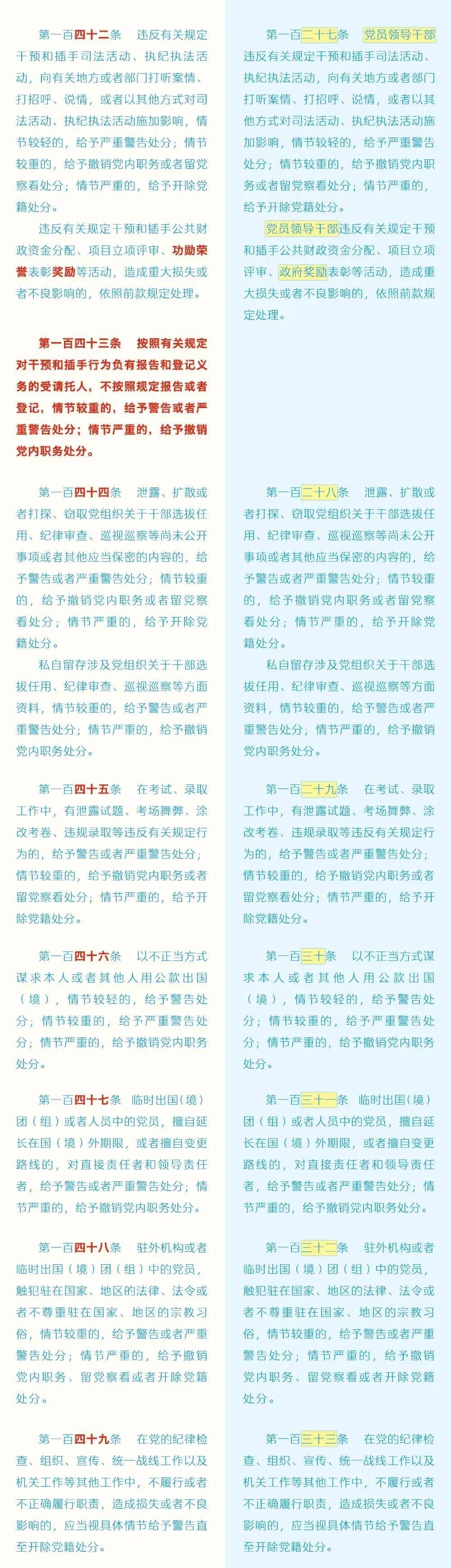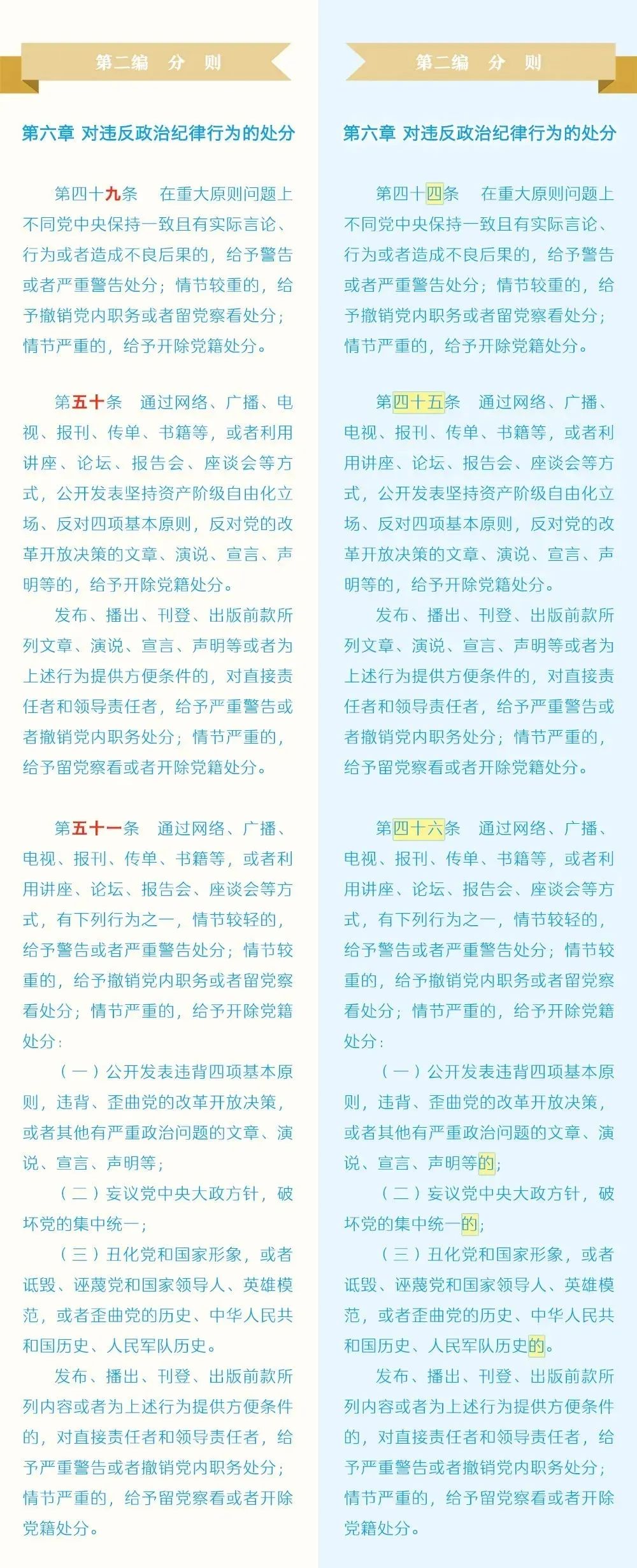 《中國(guó)共產(chǎn)黨紀(jì)律處分條例》修訂前后對(duì)照
