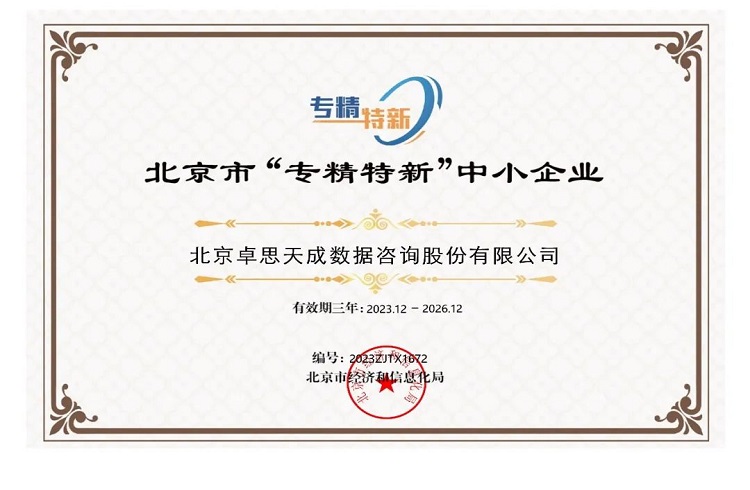 卓思及旗下光速斑馬獲“北京市專精特新中小企業(yè)”認定
