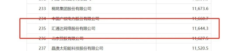 7月25日,2024年《財(cái)富》中國500強(qiáng)榜單揭曉,匯通達(dá)網(wǎng)絡(luò)股份有限公司(9878.HK)以2023年?duì)I收逾116.44億美元上榜,位列第235名。