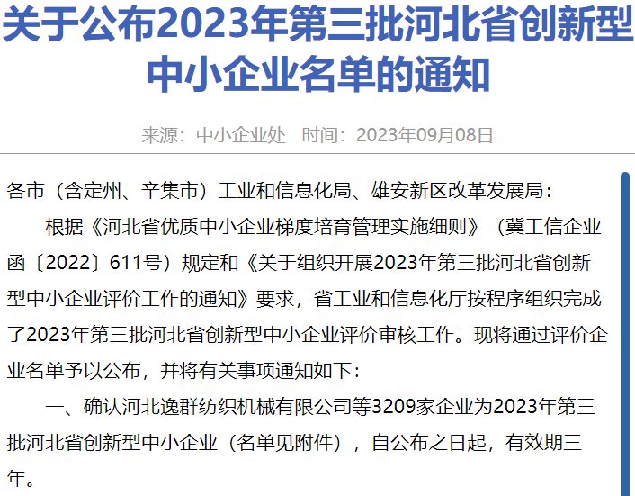 獲評河北省創(chuàng)新型中小企業(yè)
