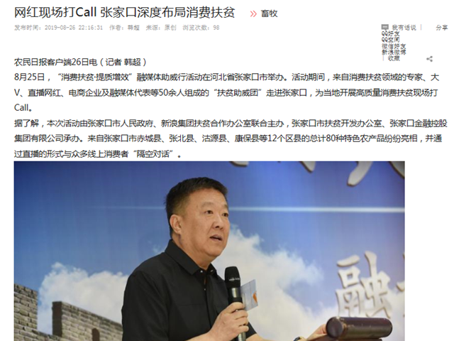 農民日報丨網紅現(xiàn)場打Call 張家口深度布局消費扶貧