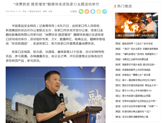 中國食品安全網丨“消費扶貧 提質增效”融媒體走進張家口主題活動舉行