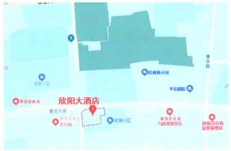 欣陽(yáng)大酒店位于康??h建設(shè)大街南,北臨文化廣場(chǎng)、南臨奧林 匹克體育館,俯瞰康巴諾爾湖,占據(jù)縣城核心商圈。酒店地上五層、 局部六層,建筑面積14520.21平米,地下建筑面積3319.89平米。 地上部分目前經(jīng)營(yíng)業(yè)態(tài)包括:酒店、餐飲、KTV、 洗衣房,地下部 分已完成土建基礎(chǔ)設(shè)施,規(guī)劃設(shè)計(jì)為溫泉、戲水。酒店后院設(shè)置停 車場(chǎng),可充份滿足住宿、用餐車輛停放(如下圖)。